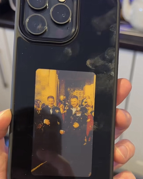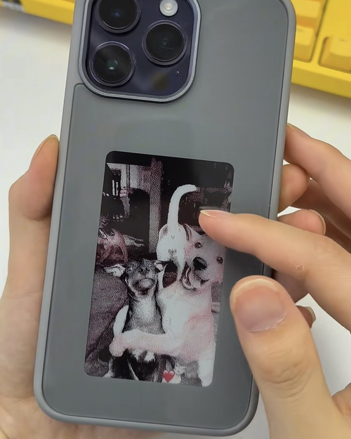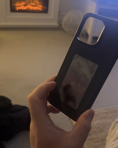 The case has a small internal battery, but it only uses power when you change the image. Once your picture is displayed, it stays there without any power. It charges automatically when your phone is plugged in, so you'll likely never need to charge it separately. A full charge supports hundreds of image changes.